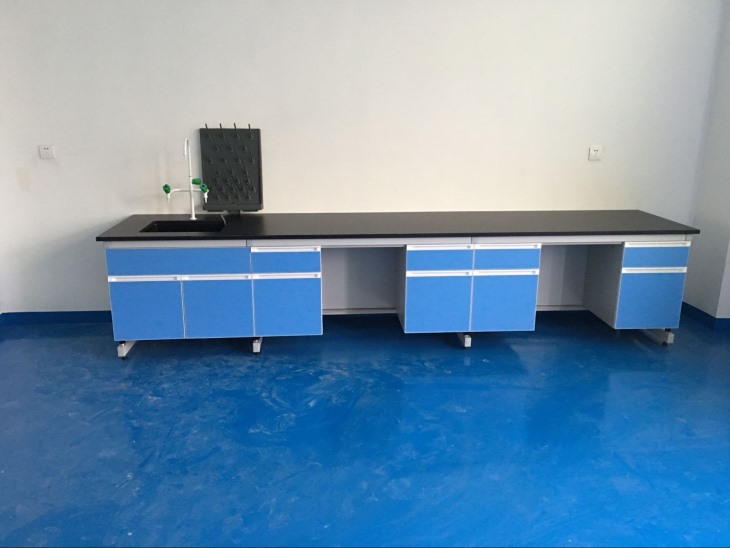 柜體:實驗臺廠家生產的鋼木邊臺采用環保型三聚氫氨板,厚度為18mm,以優質2mm厚PVC封邊防水處理。
